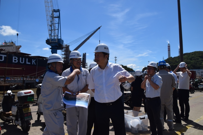 舒開鋒副總經(jīng)理重點(diǎn)匯報(bào)了公司當(dāng)前的生產(chǎn)經(jīng)營情況。在現(xiàn)場可以看到,船塢碼頭作業(yè)繁忙、處于滿負(fù)荷運(yùn)轉(zhuǎn)狀態(tài),近期更有五大知名集裝箱公司所屬船舶同時(shí)在廠修理,場景頗為壯觀。上半年,公司交船數(shù)量和產(chǎn)值均穩(wěn)步超過去年同期水平,顯示出良好的發(fā)展勢頭。